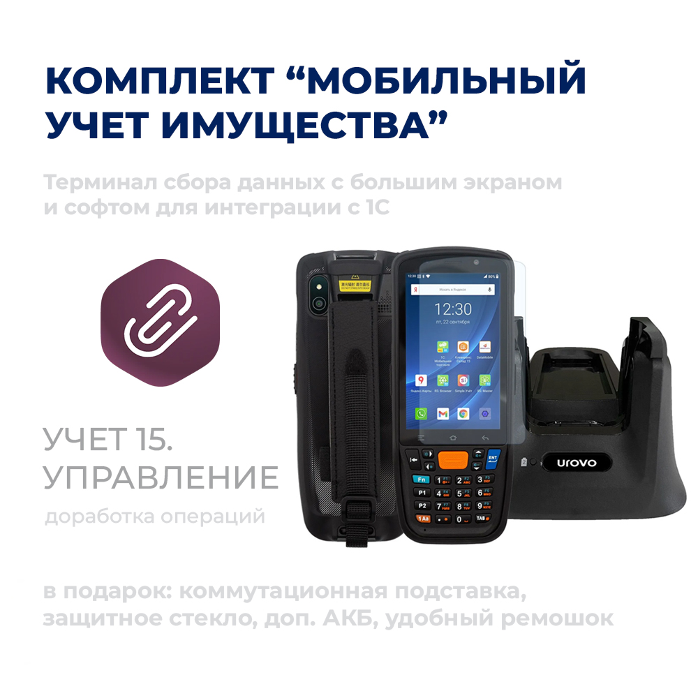 Проверенный терминал сбора данных Urovo CT48 с экраном 4", удобной клавиатурой и IP65. Универсальное решение для учета имущества, оборудования, спец. инструмента и орг.техники в любых условиях. Выгодный комплект ТСД + аксессуары + софт для интеграции с 1С: Бухгалтерия, БГУ, ERP.