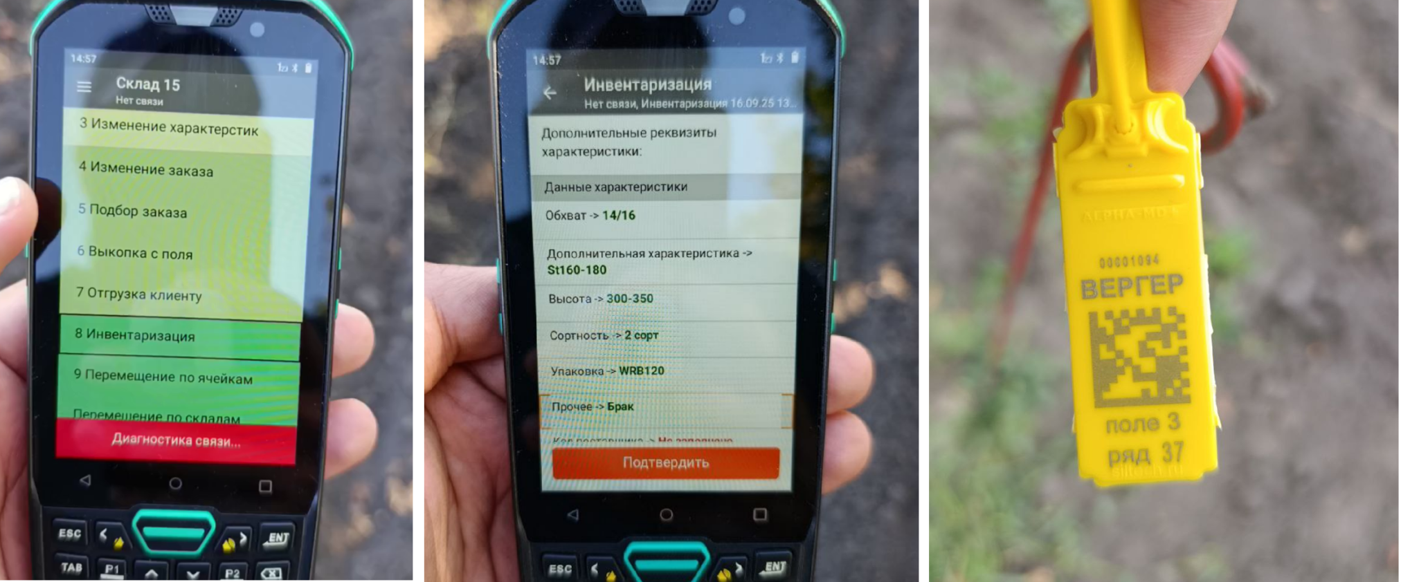 ТСД оснащены программным обеспечением с режимом автономной работы, позволяющим накапливать данные при временных сбоях связи и выгружать их при восстановлении канала — это критично для работы на площади 42 га, где покрытие Wi-Fi может быть нестабильным. Все процессы сопровождаются программным контролем со стороны мобильного ПО, что снижает влияние человеческого фактора.