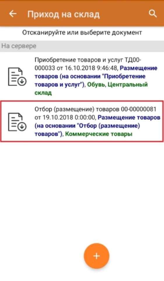 Проверка, оприходование и размещение товаров осуществляется за одну операцию, полностью мобильно, с помощью терминалов сбора данных. Складские документы автоматически создаются в системе 1С:Предприятие после обмена с ТСД.