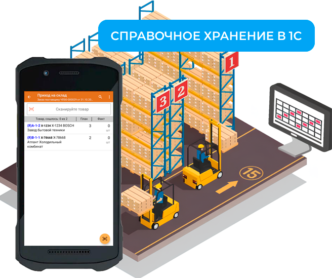 Решение разработано на базе 1С и мобильного программного обеспечения Клеверенс. Mobile SMARTS.